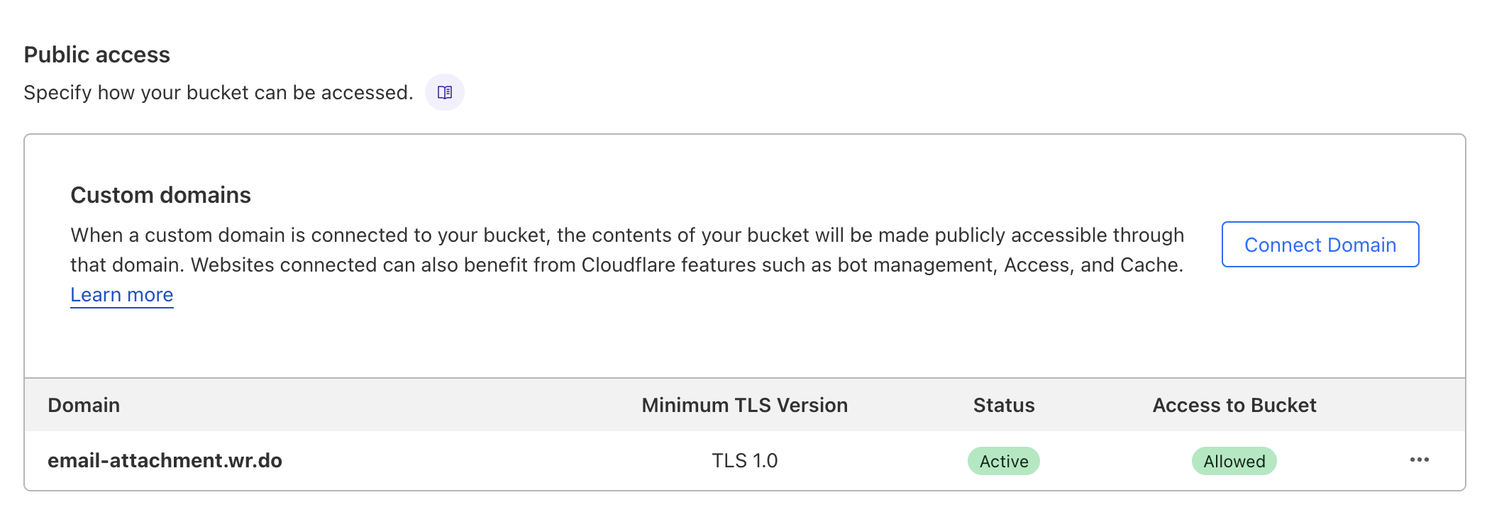 完成上述步骤后,你需要为 r2 存储添加一个公共域名。